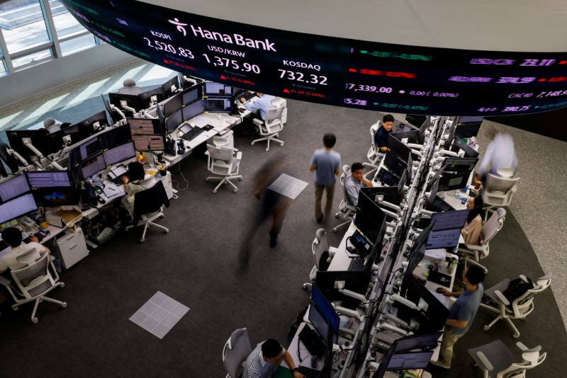 SEOUL (Reuters) - South Korea's mom-and-pop investors are defying last week's global financial markets rout by pouring even more funds into U.S. stocks, a years-long trend that analysts and investors bet will continue due to the depressed value proposition at home. South Korean retailers have been scooping up Nvidia (NASDAQ:NVDA), Tesla (NASDAQ:TSLA) Inc. and Apple shares (NASDAQ:AAPL) this year fuelled in part by the worldwide AI-frenzy, a move that comes despite government efforts to boost the domestic stock market. Sunny Noh, a 49-year-old who has been investing in Tesla since 2020 and now holds about 85% of his financial assets in the electric-vehicle maker, said he sees the recent market plunge as a long-term buying opportunity. "It can fall in a year or two, but it will rise again in the longer term of 10 years," he said. Retailers like Noh have been frustrated by the so-called "Korea discount" of lower shareholder returns and depressed valuations in the $1.8 trillion stock market, home to global tech titans like Samsung Electronics (KS:005930) and SK Hynix and automakers such as Hyundai Motor (OTC:HYMTF).